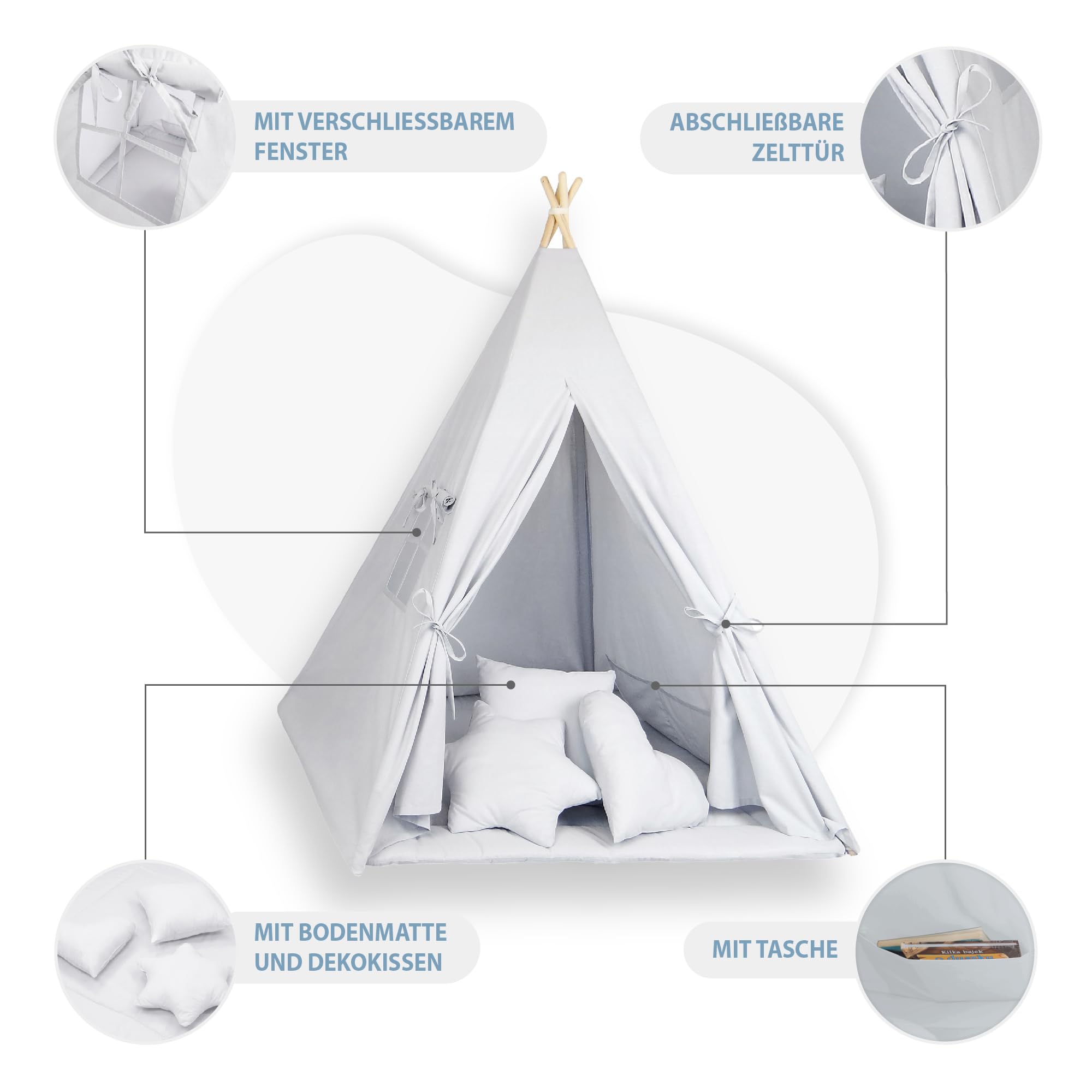 Caractéristiques: Tente de Jeu Tipi Chambre d'enfant Tente Indienne Extérieur Intérieur avec Tapis de Jeu et 3 Coussins