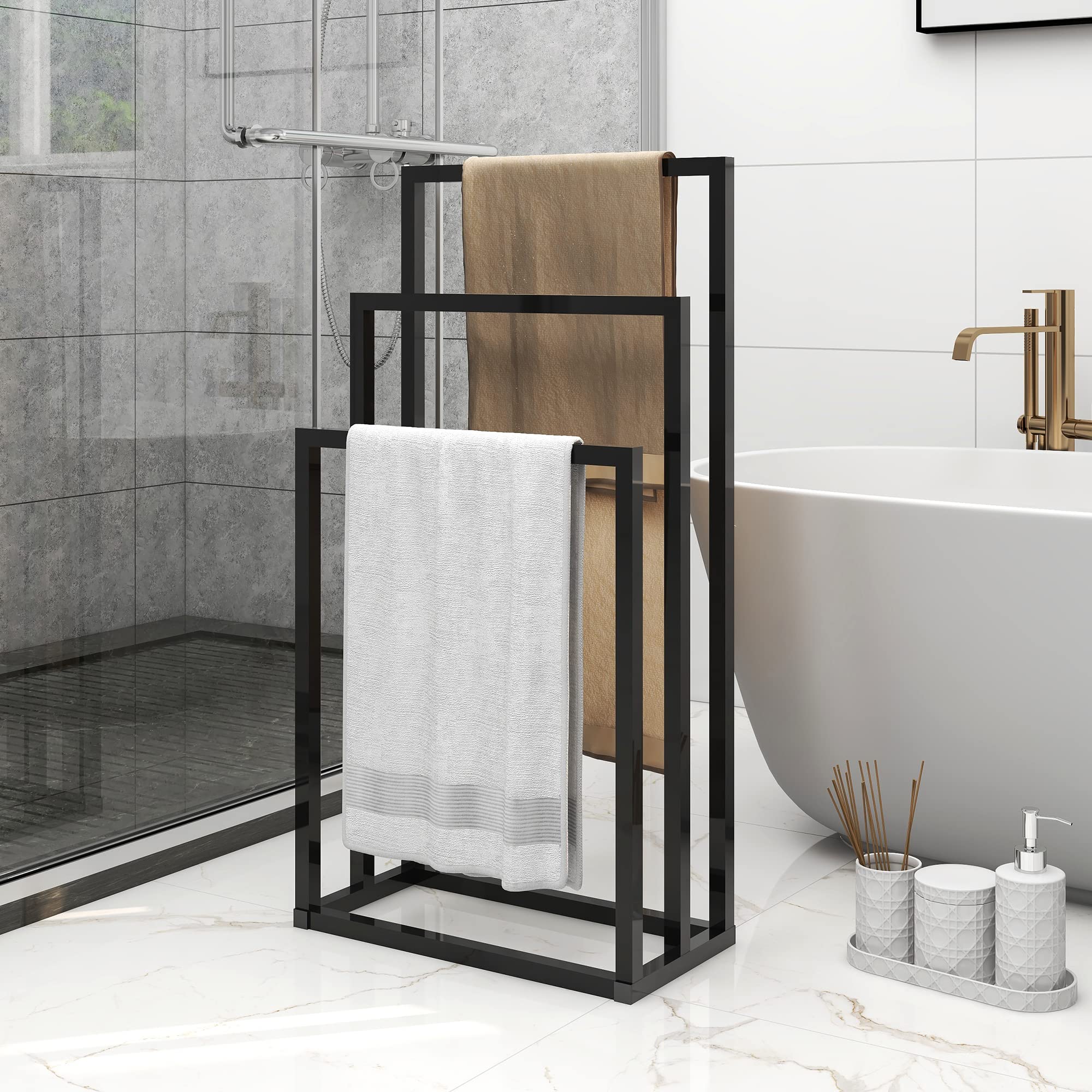 Caractéristiques : Organisateur en métal à 3 Niveaux pour Serviettes de Bain et à Main, Accessoires de Salle de Bain, Noir